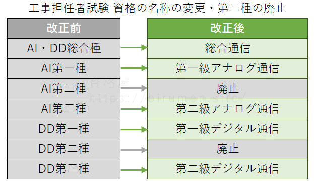 工事担任者 工事担任者試験の2021年(令和3年)4月改正の概要【総合通信】 この記事では、2021年 (令和3年) 4月1日からの工事担任者試験の改正点をご紹介しています。交付済みの資格者証の扱い、工事・監督の範囲の変更の有無、科目合格済みの試験科目の扱いなど気になる改正点をまとめています。 2021.01.19 工事担任者